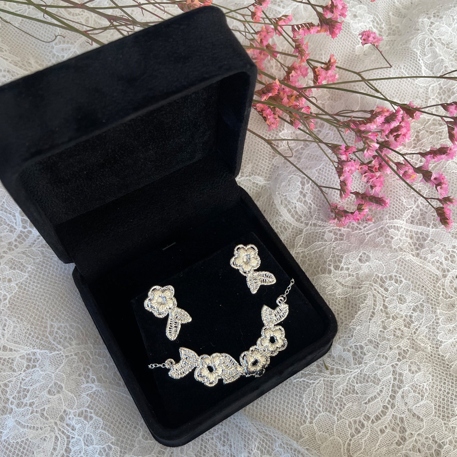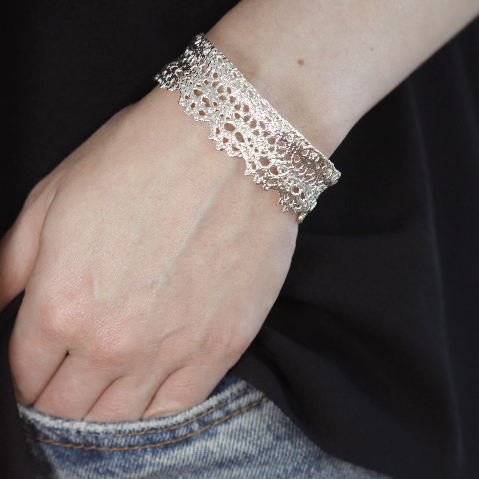 Do you have an old wedding dress or vintage lace in your family? You may have wondered if it could have a better purpose than hanging in the closet or laying in a drawer. You also may have fond memories connected to your lace. We will transform your heirloom lace into exceptional jewelry with a personal connection and story. By dipping the lace in 24k gold, sterling silver, or rose gold, the beauty and value of the lace is preserved.