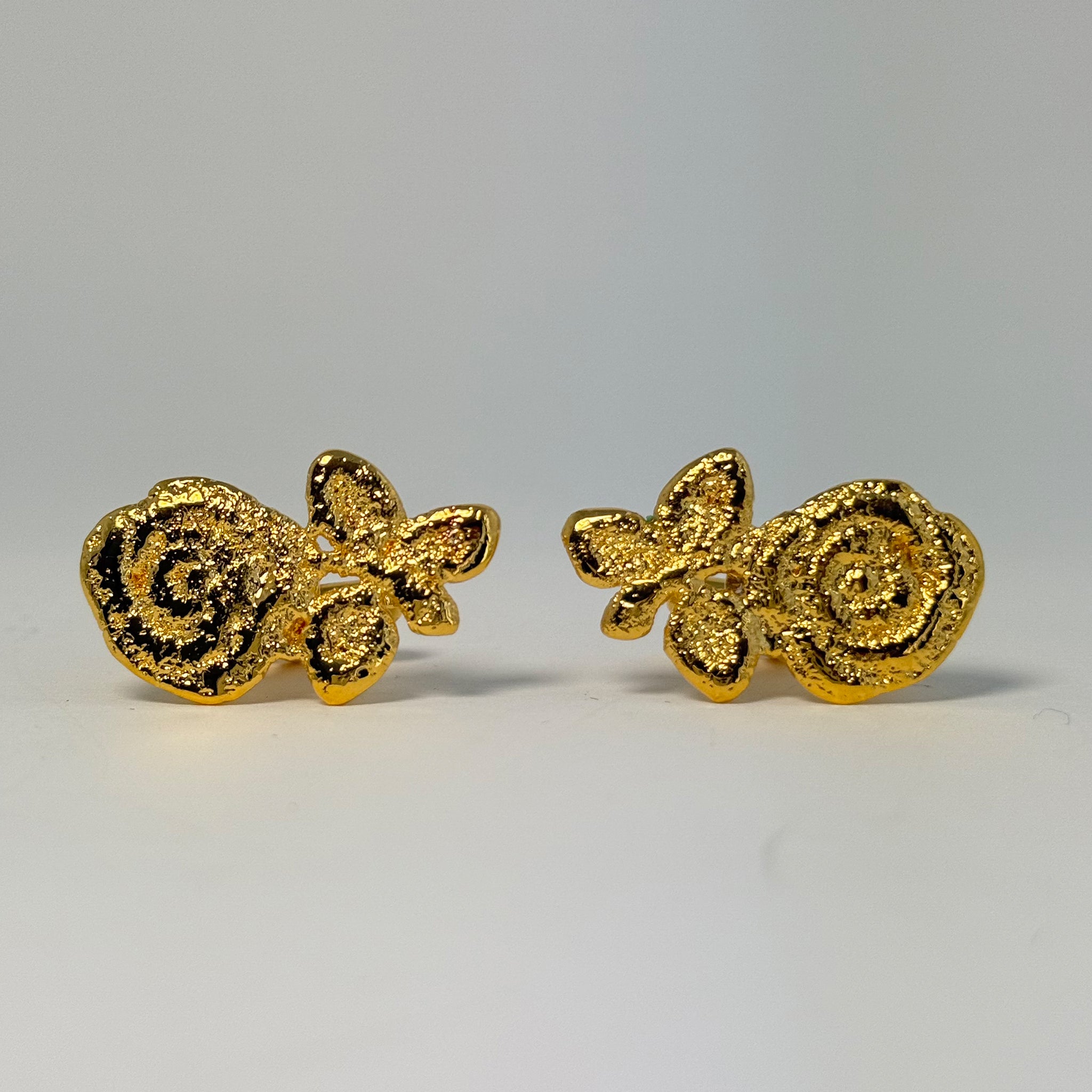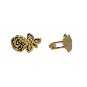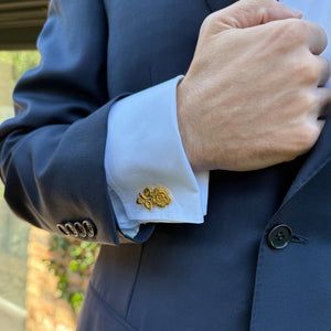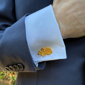 • The Albie cufflinks are crafted from the rose lace border of a vintage wedding veil, then meticulously solidified in 24k gold.